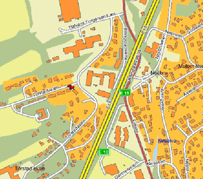 Fra E-18: Ta av til Slependen (IKEA), følg skilt mot Nesbru, ta inn Halvard Torgersens vei,